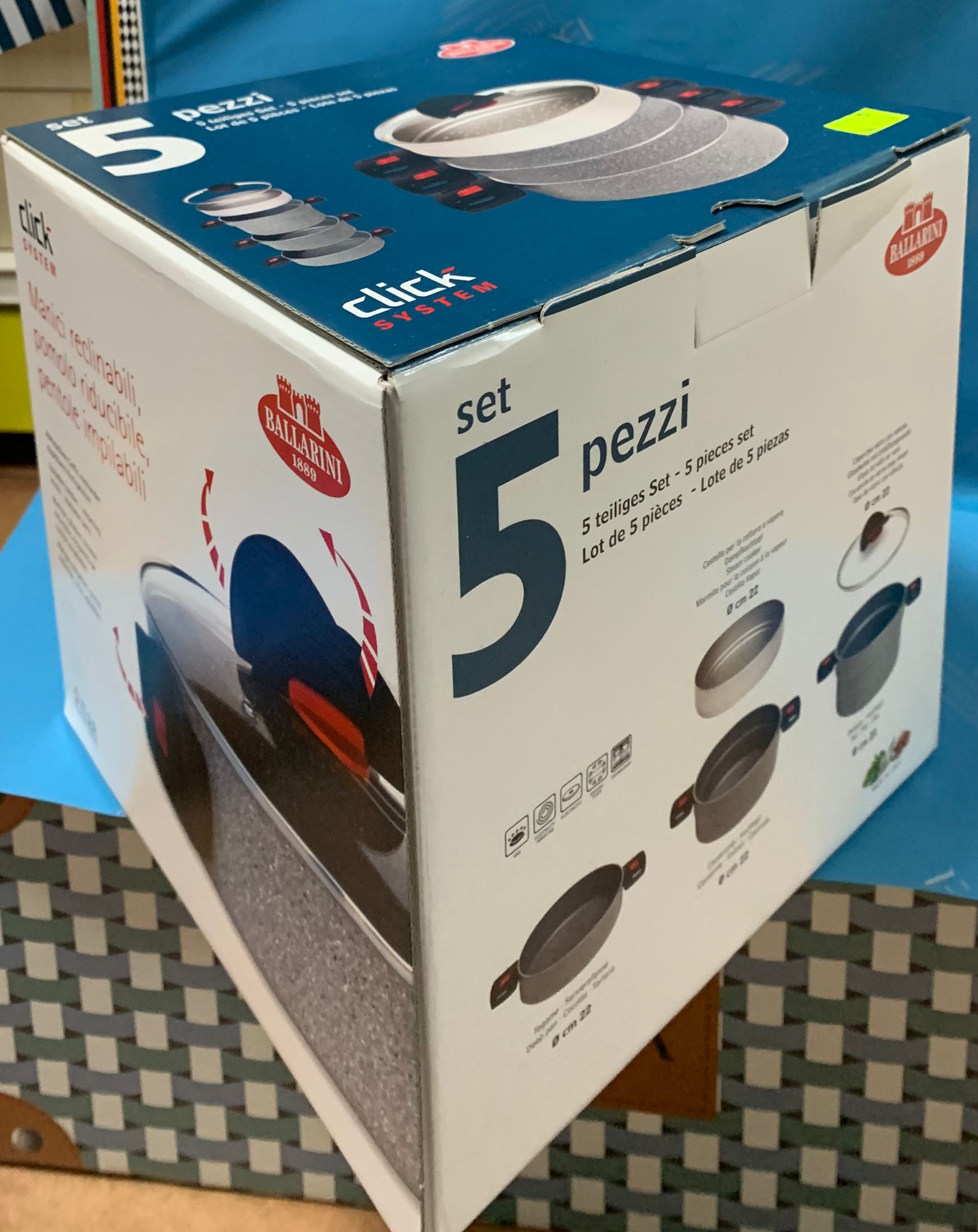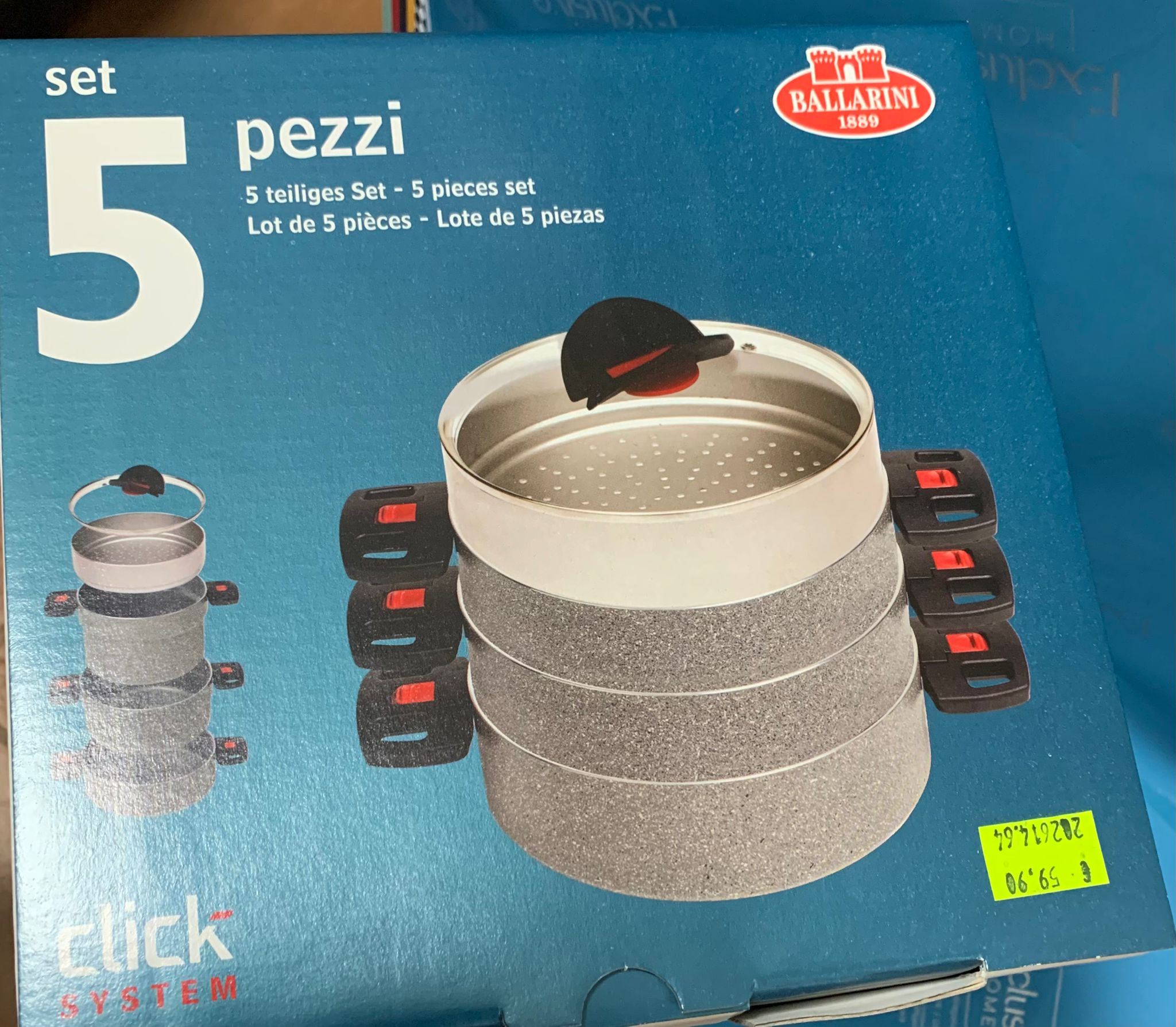 BALLARINI CLICK&COOK LE IMPILABILI – SET PENTOLE SALVASPAZIO 5 PZ GRANITIUM