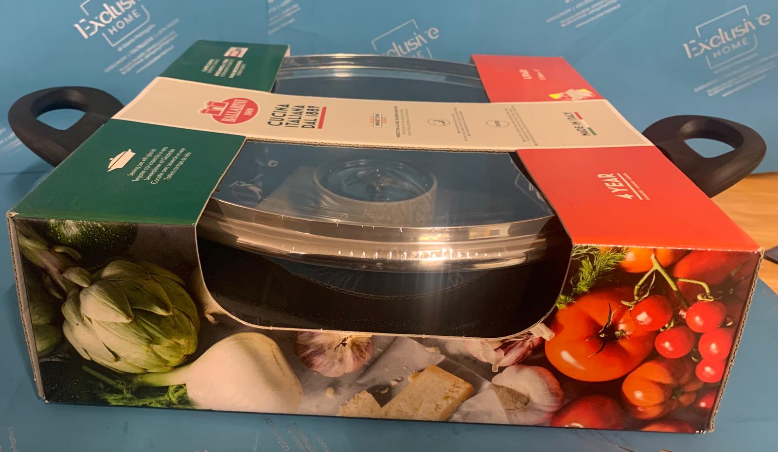 La padella BALLARINI serie LIPARI da 28 cm è disegnata a Milano e prodotta in Italia. Se ti piace cucinare per molti ospiti, allora questa padella da 28 cm è la misura giusta per te. Il solido alluminio forgiato riscalda rapidamente le pentole ed è perfetto per i cuochi impazienti che hanno poco tempo. Incredibilmente pratico è anche il Thermopoint integrato nel manico di plastica che ti mostra quando puoi iniziare a cucinare e quando la padella è abbastanza fredda da essere pulita. La padella è adatta all’uso su piastre a induzione e dispone della tecnologia a induzione radiant appositamente sviluppata da BALLARINI con un fondo bimetallico in alluminio e acciaio. Questo garantisce un’eccellente conduzione del calore, che è anche un bene per il risparmio energetico. Grazie al rivestimento antiaderente a 3 strati KERAVIS Extreme, non dovrai mai più preoccuparti dei graffi e crepe nella padella.