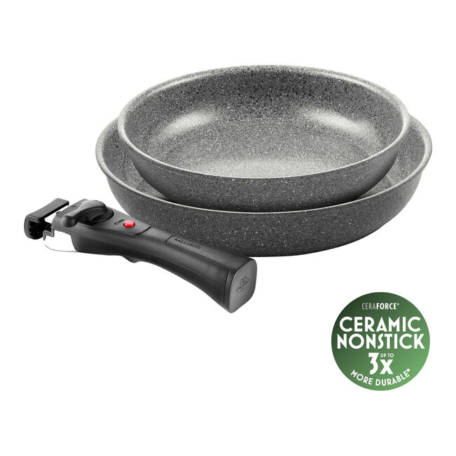 Risultati di cottura impeccabili grazie al resistente rivestimento antiaderente di ultima generazione Ceraforce® Granitium prodotto senza PFAS e con eccellenti proprietà antiaderenti. Grazie al fondo per induzione Radiant, la padella si riscalda in modo rapido e uniforme, consentendo di preparare perfettamente ogni piatto. Il manico rimovibile, può sostenere fino a 10 kg ed è dotato di inserti in silicone. Ideale per le tue pentole e padelle, perché le protegge dai graffi durante l’uso.