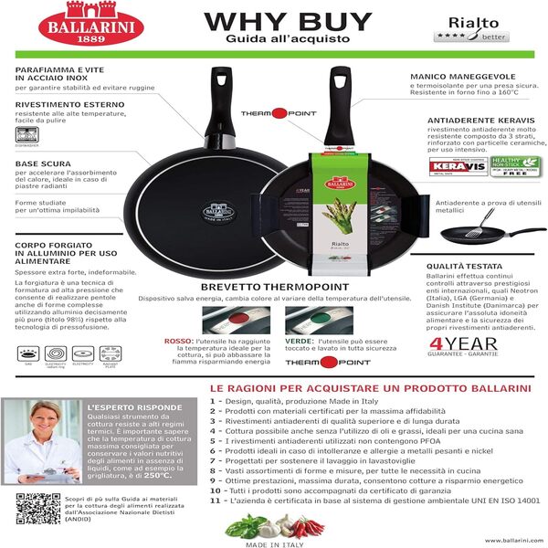 - Tegame Ballarini con rivestimento antiaderente multistrato, Ottimo per uso intensivo e quotidiano, Per cuocere e riscaldare una grande varietà di pietanze