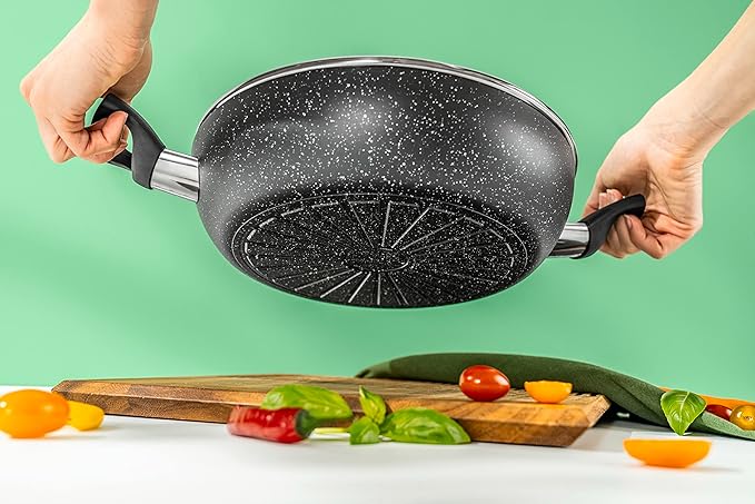 Scopri il piacere di cucinare con il tegame Vipiteno BALLARINI da 28 cm. Il nuovo rivestimento antiaderente di ultima generazione CERAFORCE è prodotto senza PFAS ed Offre eccellenti proprietà antiaderenti. Il fondo ad induzione Radiant garantisce risultati di cottura perfetti: distribuisce il calore in modo rapido e uniforme in tutta la padella. Inoltre, la padella è dotata di THERMOPOINT, l’indicatore di calore che diventa rosso non appena la padella è in temperatura. Il manico in plastica è ergonomico, rimane freddo e garantisce che la padella sia sempre comoda da tenere in mano.