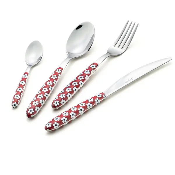 Vero Margarita è una collezione di posate dal design iconico caratterizzata da un piccolo decoro floreale. Il Fiore, simbolo di semplicità, con i suoi petali bianchi e i contorni definiti richiama purezza e bellezza. Il decoro è realizzato con stampa a sublimazione, tecnologia che permette di ottenere un prodotto di qualità, resistente ai graffi e ai decadimenti cromatici.