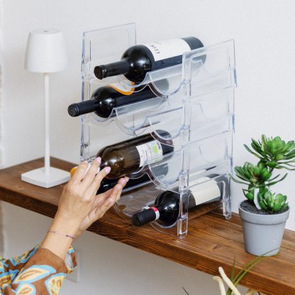 Cantinetta per 12 bottiglie della collezione Welcome. Realizzato in acrilico, questo portabottiglie è composto da 4 moduli con 3 alloggi ciascuno. E’ modulare e può essere utilizzato anche in outdoor perchè resistente agli sbalzi termici.