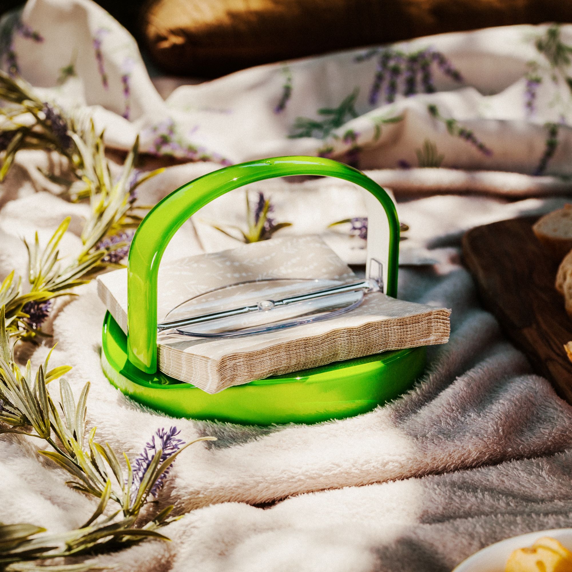 - Costruzione intelligente: plastica resistente da utilizzare all’interno e all’esterno e bordo curvo per mantenere i tovaglioli puliti, ordinati e sempre comodi da portare. Grazie alla maniglia, è facile da trasportare