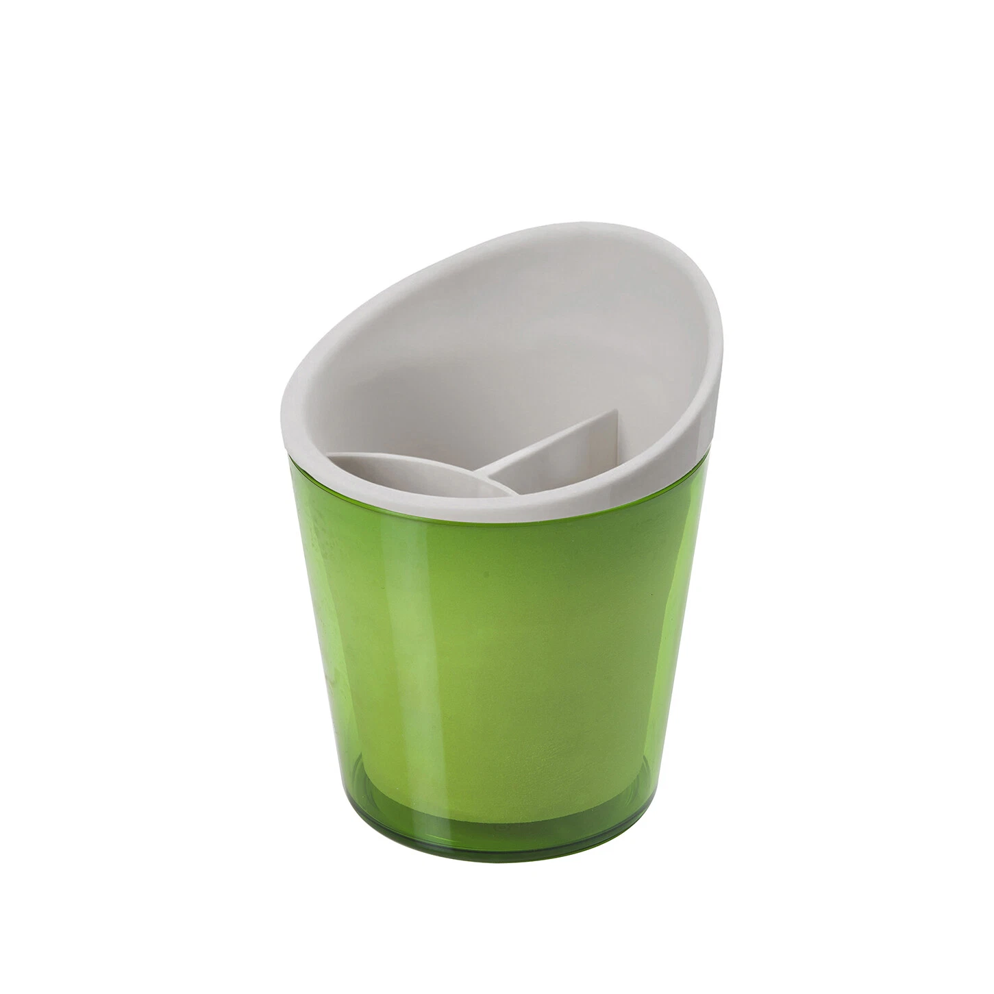 Scolaposate della collezione Trendy, dalle forme tondeggianti. Questo scolaposate è composto da un contenitore esterno colorato, uno interno bianco con fori per lo scolo dell’acqua e un divisore bianco per le posate. Il fondo trasparente consente di verificare quando il contenitore è pieno di acqua scolata. Può essere lavato in lavastoviglie.