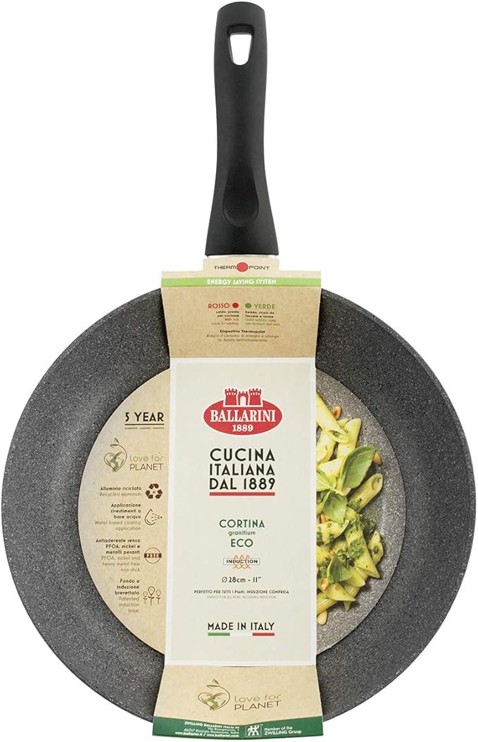 Padella 1 manico granitium cortina eco. La lega di alluminio ad alto indice di purezza, unito al rivestimento antiaderete a 5 strati senza pfoa, nickel e metalli pesanti per uso ultra insensivo garantisce alte prestazioni per una cucina piùsalutare. Fondo ad alto spessore ad induzione che assorbe e trasmette più calore e garantisce un eccelente diffusione termica. Rivestimento esterno facile da pulre. Manicature impugnabili in sicurezza resistenti in forno fino a 160°. Lavabile in lavastoviglie.