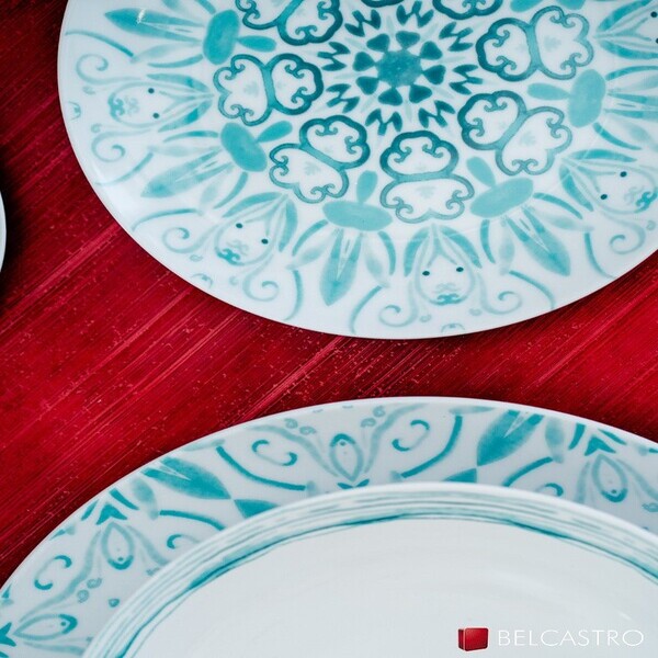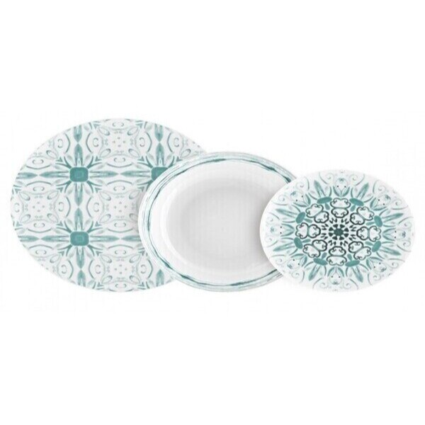 Servizio composto da 6 piatti grandi (27 cm), 6 piatti piccoli (19 cm) e 6 piatti fondi (21 cm).