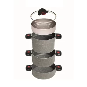 BALLARINI CLICK&COOK LE IMPILABILI – SET PENTOLE SALVASPAZIO 5 PZ GRANITIUM